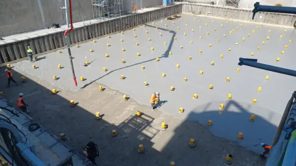 Voor de nieuwe indeling van het waterbekken zijn in het werk gestorte, waterdichte wanden aangebracht. Waar bestaande leidingen zijn verwijderd, zijn herstellende betonwerken uitgevoerd om de wanden waterdicht af te werken. Waar nieuwe leidingen zijn aangelegd, zijn die mee ingegoten bij het storten van de wanden.