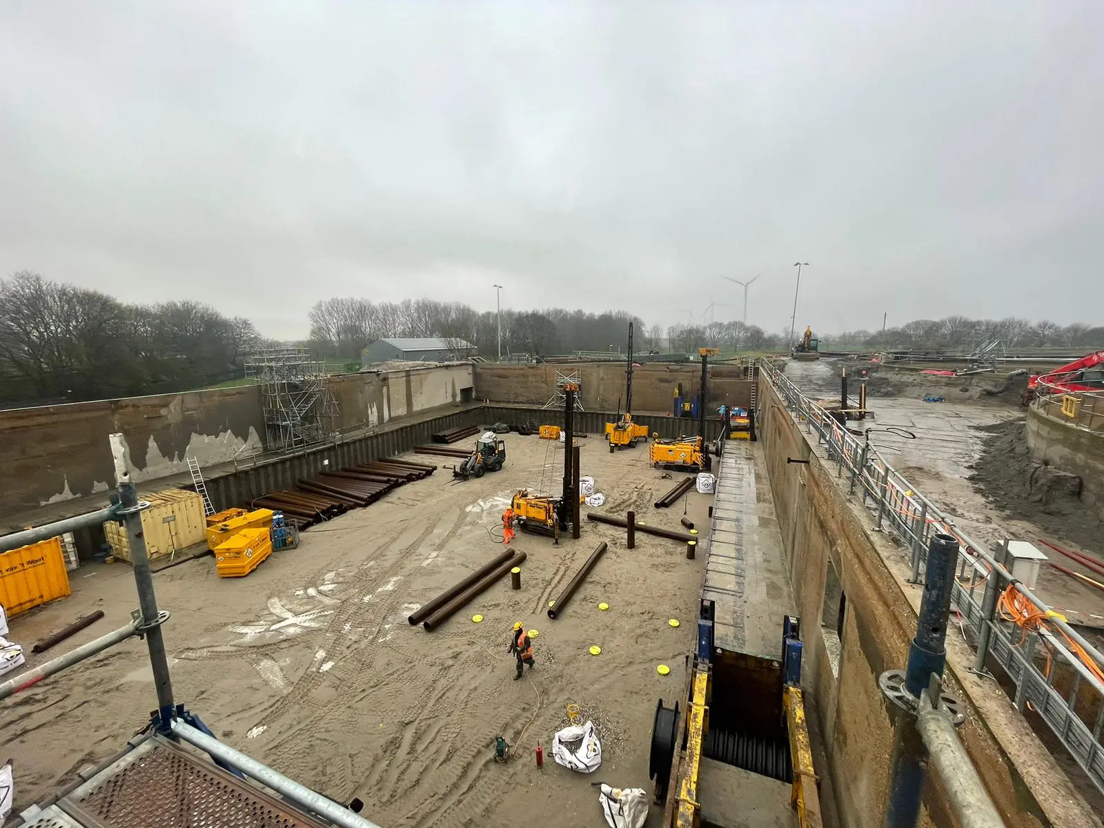 De civiele werkzaamheden omvatte het aanbrengen van heipalen, vloeren, wanden, uitvoeren van betonreparaties en het instorten van HDPE-leidingen. In totaal zijn 162 heipalen aangebracht. De betonnen vloer is waterdicht en chemisch bestand gerealiseerd. In de waterdichte vloer zijn twee pompputten geïntegreerd.