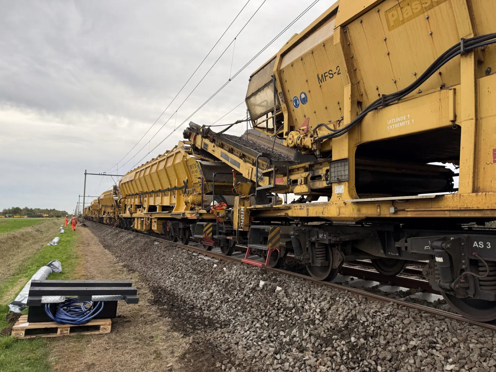 Juist in zulke momenten zie je de kracht van samenwerking. De bemanning van de vernieuwingstrein wist de schade in recordtempo te herstellen, zodat we weer vooruit konden. Ook de ballastafvoermachine-ploeg kwam met volle energie naar het werk om alsnog de ballast af te werken. Achter de schermen zorgde het logistieke team dat alles in beweging bleef. Dankzij ieders inzet konden we, ondanks de tegenslagen, een prachtig stuk spoorwerk opleveren.