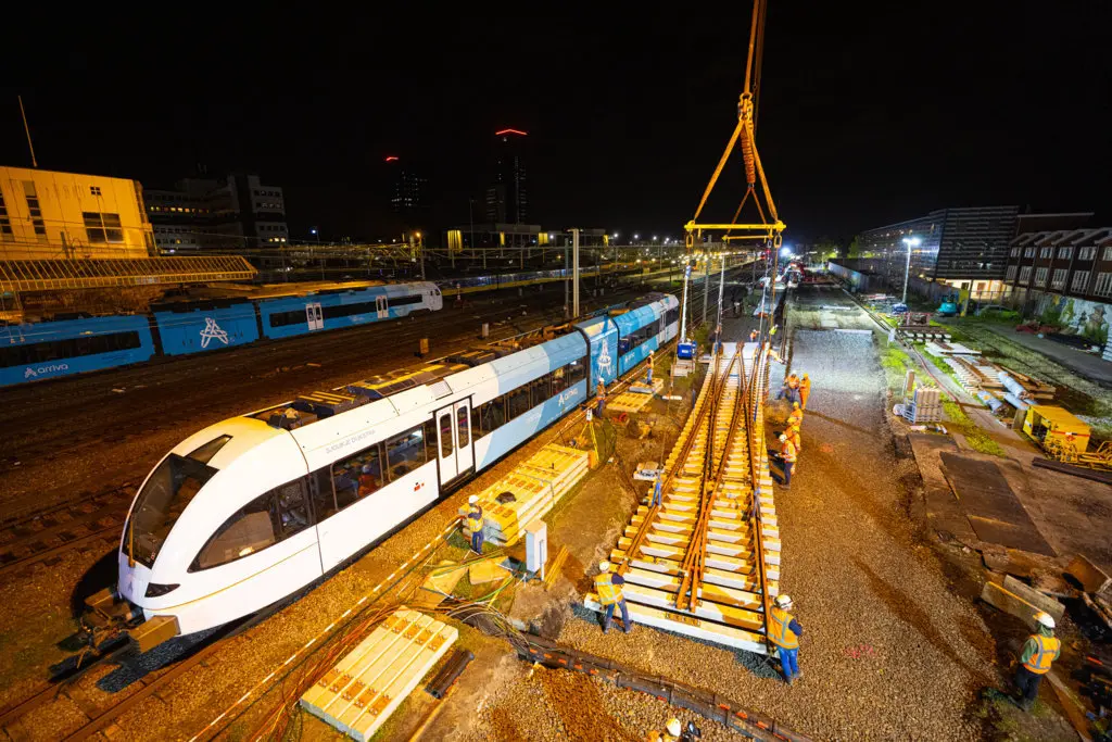 De afgelopen 2 jaar werkte we samen met ProRail, provincie Fryslân en het ministerie van Infrastructuur en Waterstaat aan het emplacement Leeuwarden. Tijdens project ‘Ombouw Emplacement Leeuwarden’ zorgden we onder andere voor nieuwe sporen, wissels, uitbreiding van de bovenleiding, bouwden we nieuwe service- en opstelsporen en verbeterde we de watervoorziening. We hebben een snelheidsverhoging mogelijk gemaakt door de sporen 1 en 2 uit elkaar te leggen. Zo kan in de spitsrichting een kwartierdienst worden gereden tussen Sneek en Leeuwarden en verbetert de overstap op station Leeuwarden. Hierdoor kan er nu onder andere een extra trein rijden van en naar Sneek.