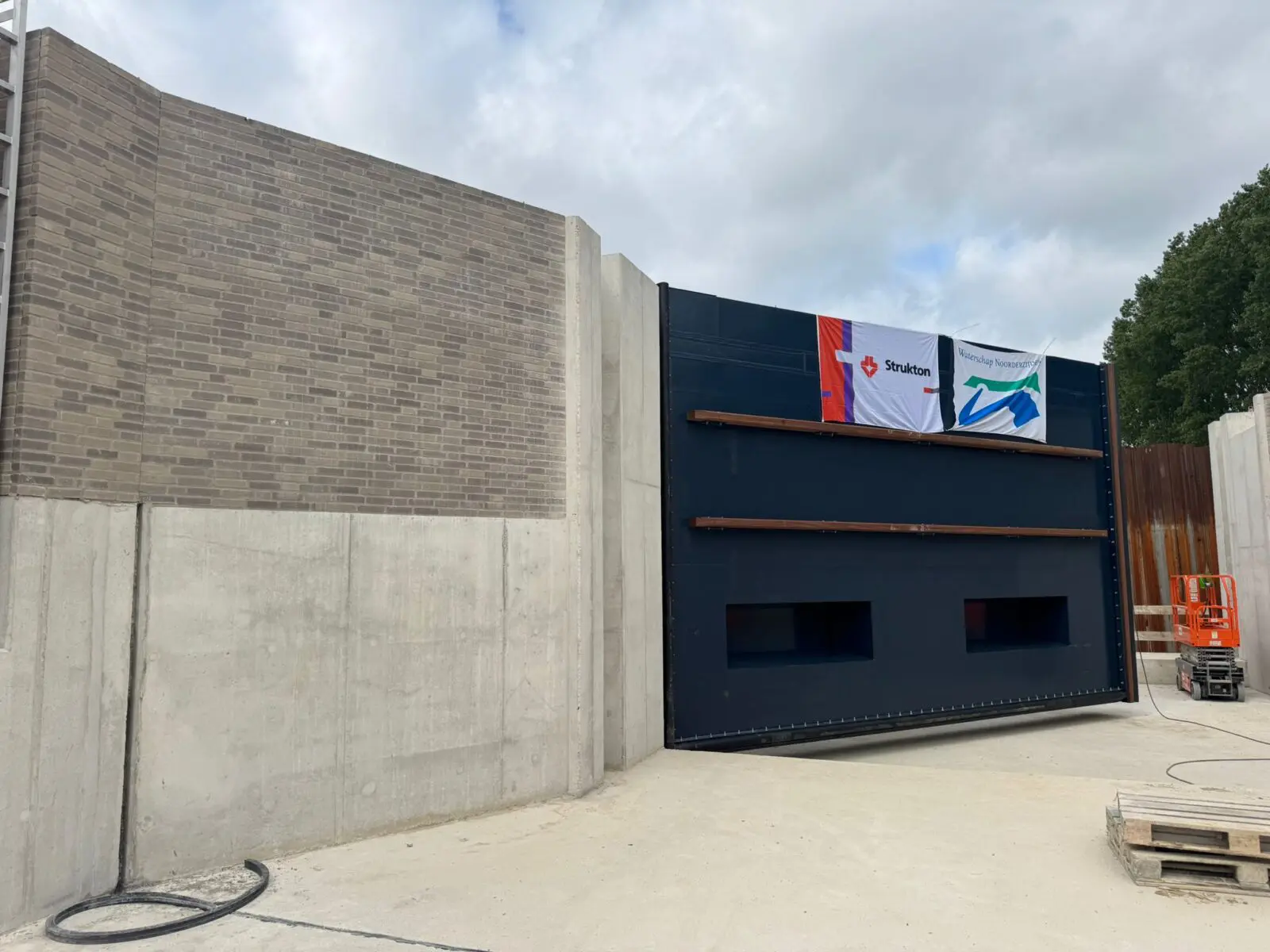 Op woensdag 21 mei is in Zoutkamp de stalen deur van de nieuwe sluis succesvol geplaatst. Met behulp van een 500-tons telekraan werd de 25,7 ton zware deur nauwkeurig op zijn plek gehesen in het nieuwe sluishoofd.